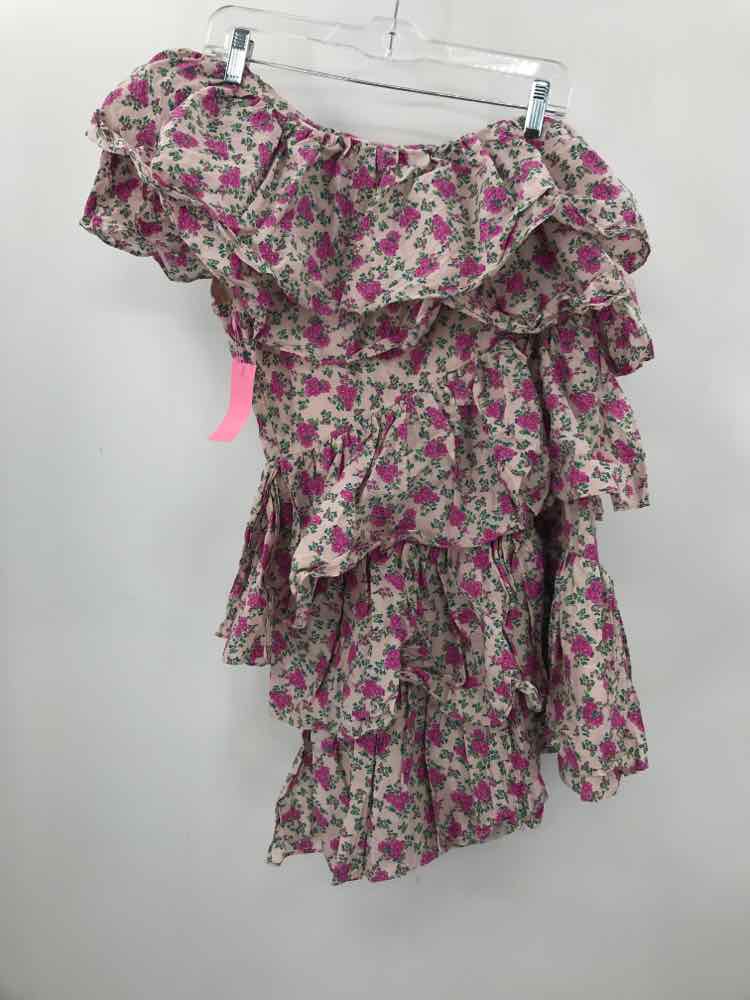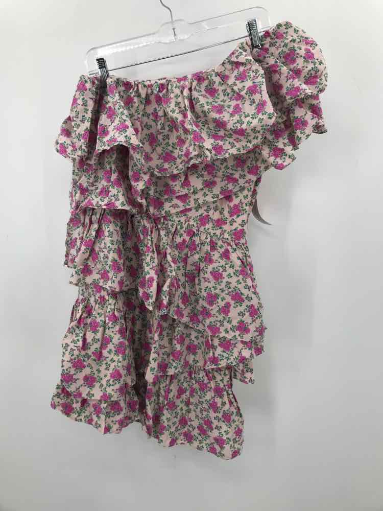 Vici x Gina Pink Size Medium Floral Ruffle Knee Length One Shoulder Dress