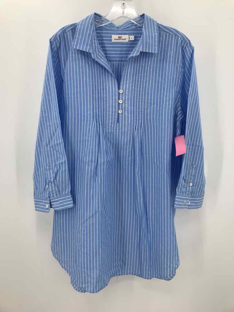 Vineyard Vines Blue Size Large Stripe T-Shirt Knee Length Long Sleeve Dress