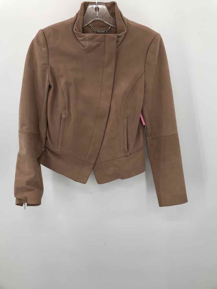 Pre-Owned WHBM Tan Size XS Leather Zip Up Jacket