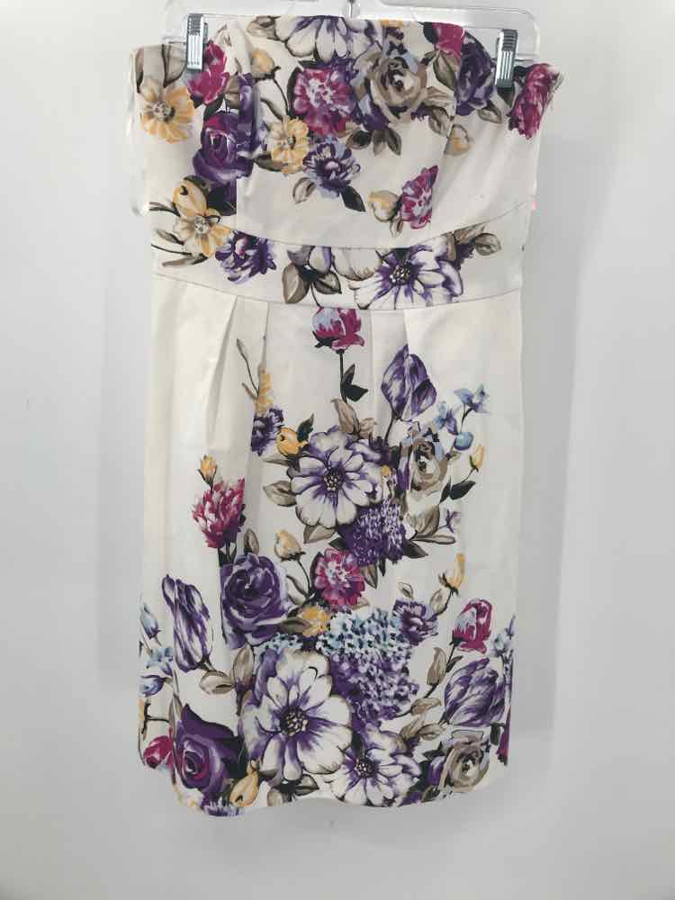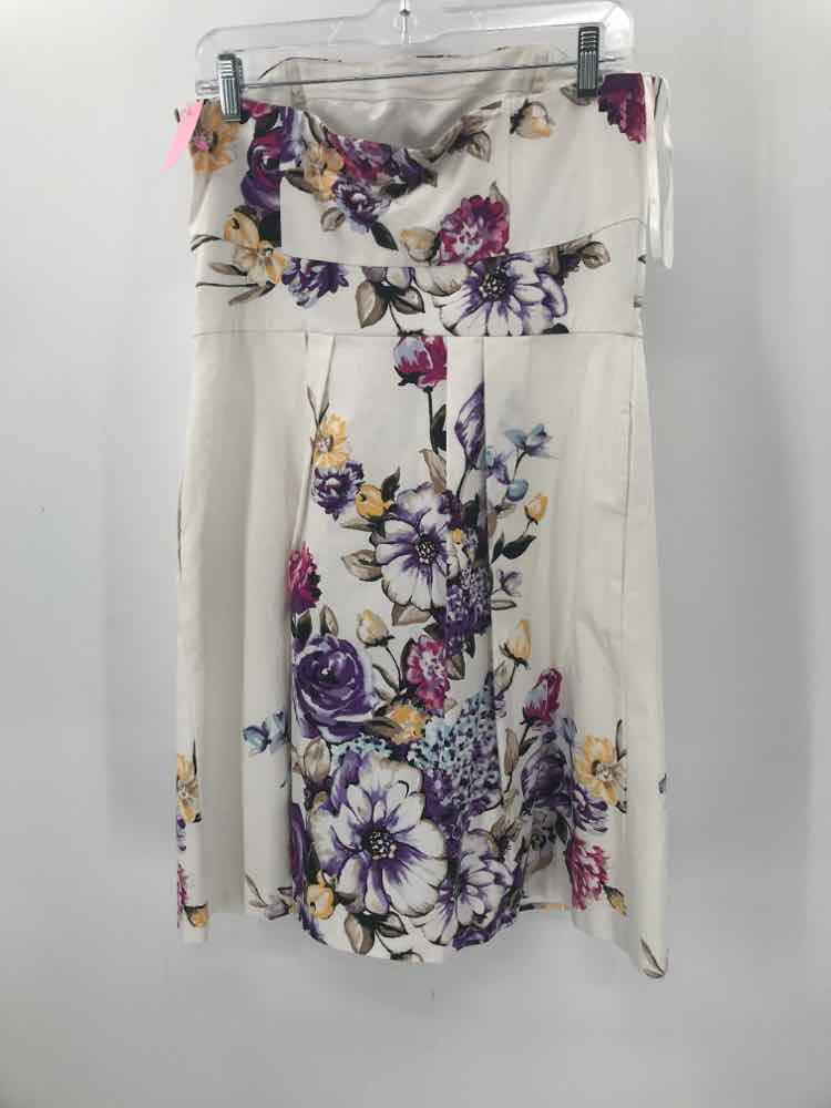 Pre-Owned WHBM White Size 10 Floral Short Strapless Dress