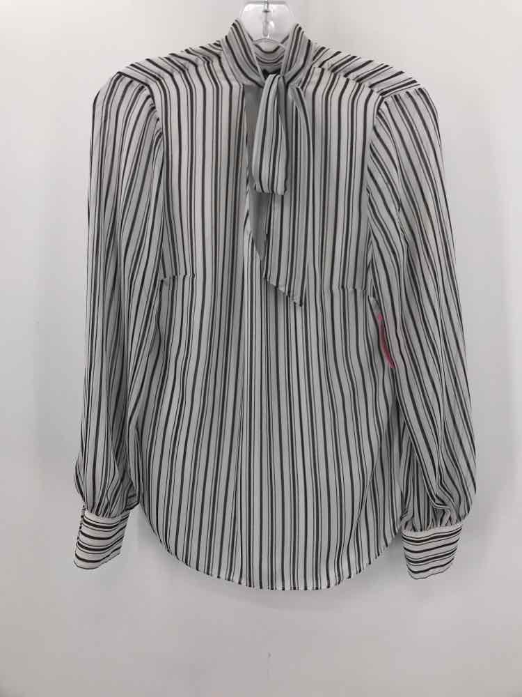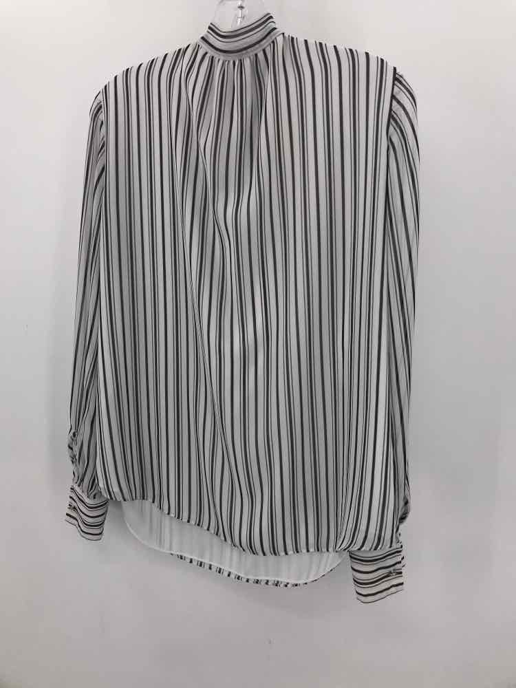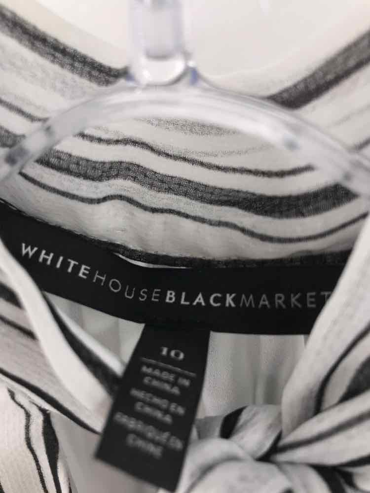 Pre-Owned WHBM White Size 10 Stripe Long Sleeve Blouse
