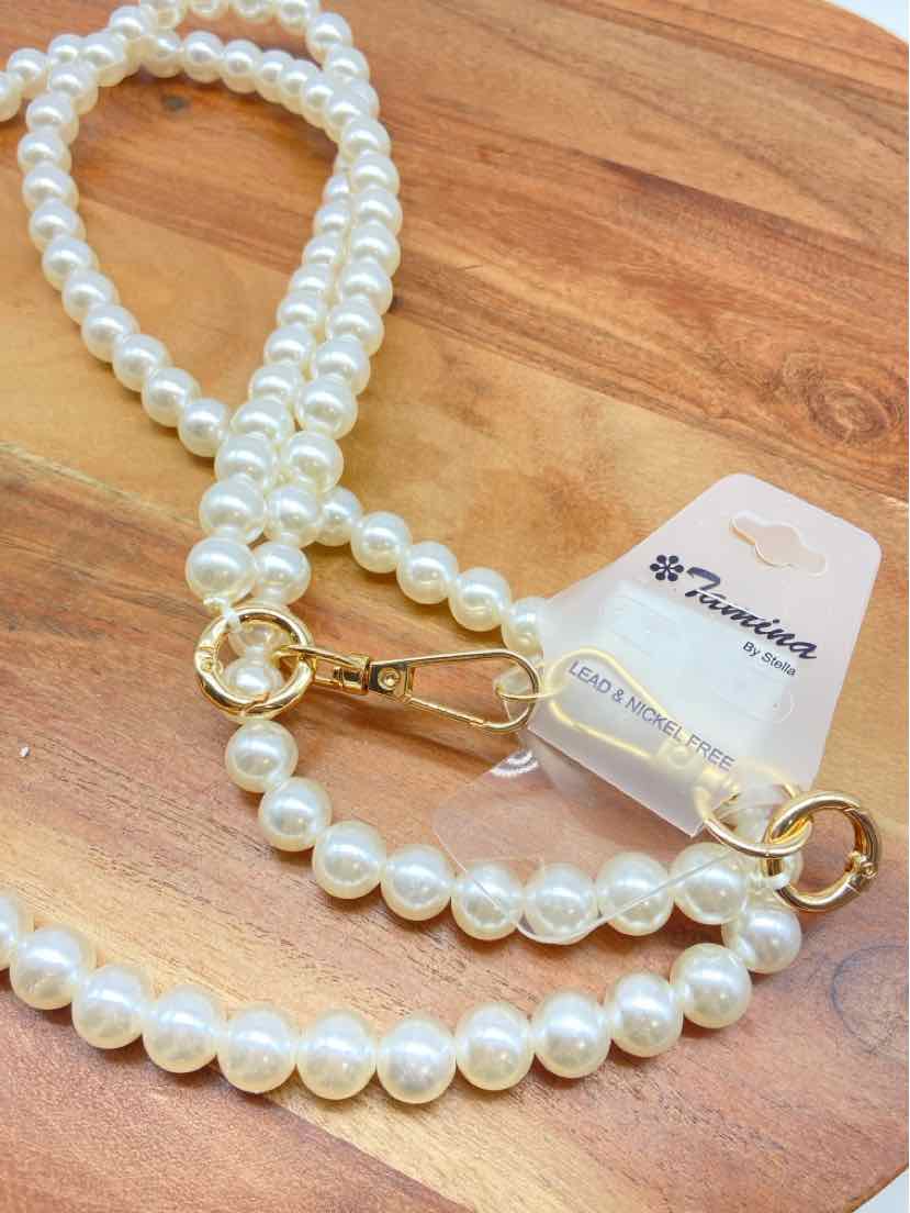 White Faxu Pearl Crossbody Phone Case