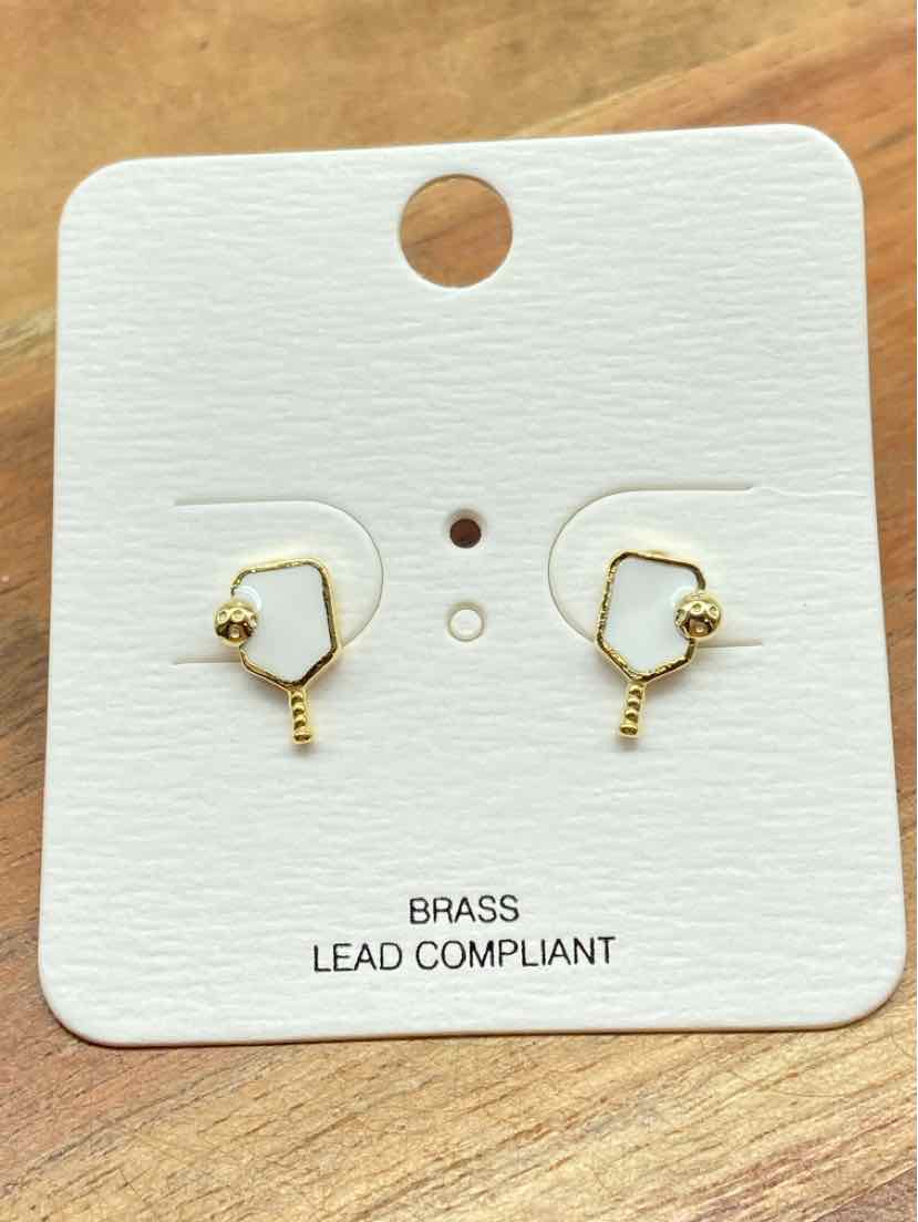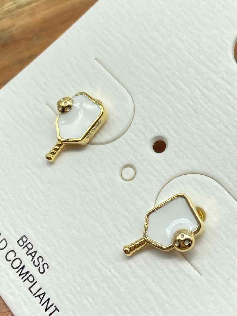 White Pickleball Pierced Stud Earring