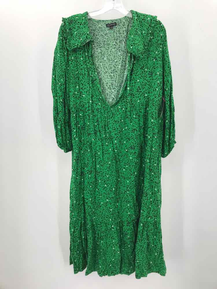 Pre-Owned Who What Wear Green Size Medium Shift Midi Long Sleeve Dress