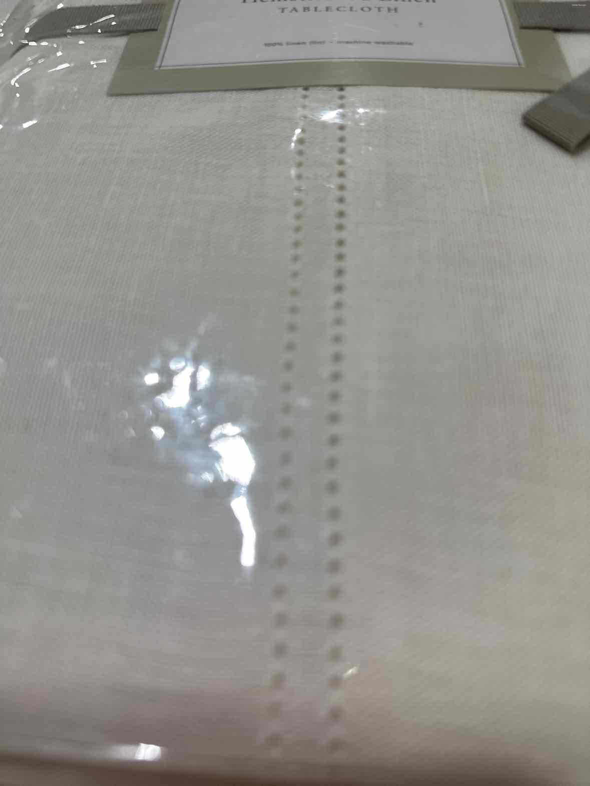 Pre-Owned William Sonoma White Fabric Hemstitch Tablecloth