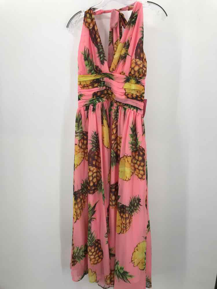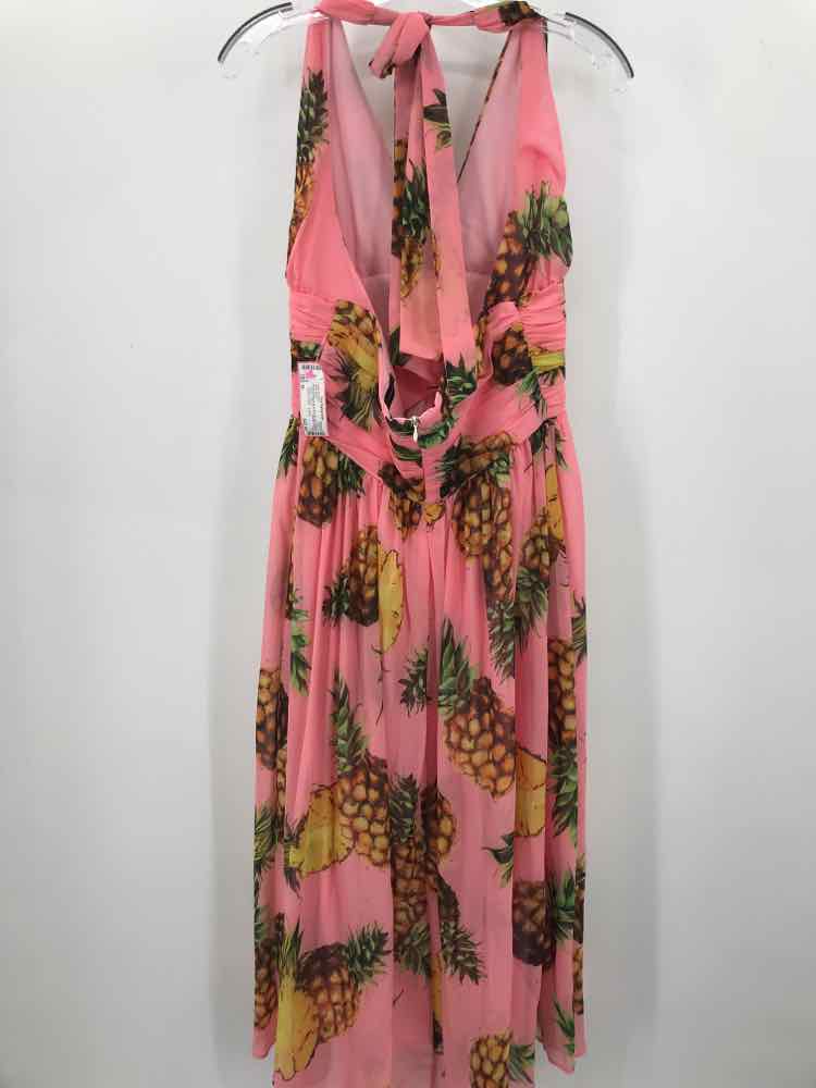 Pre-Owned Witch & Knight Pink Size XL Floral Shift Midi Halter Dress