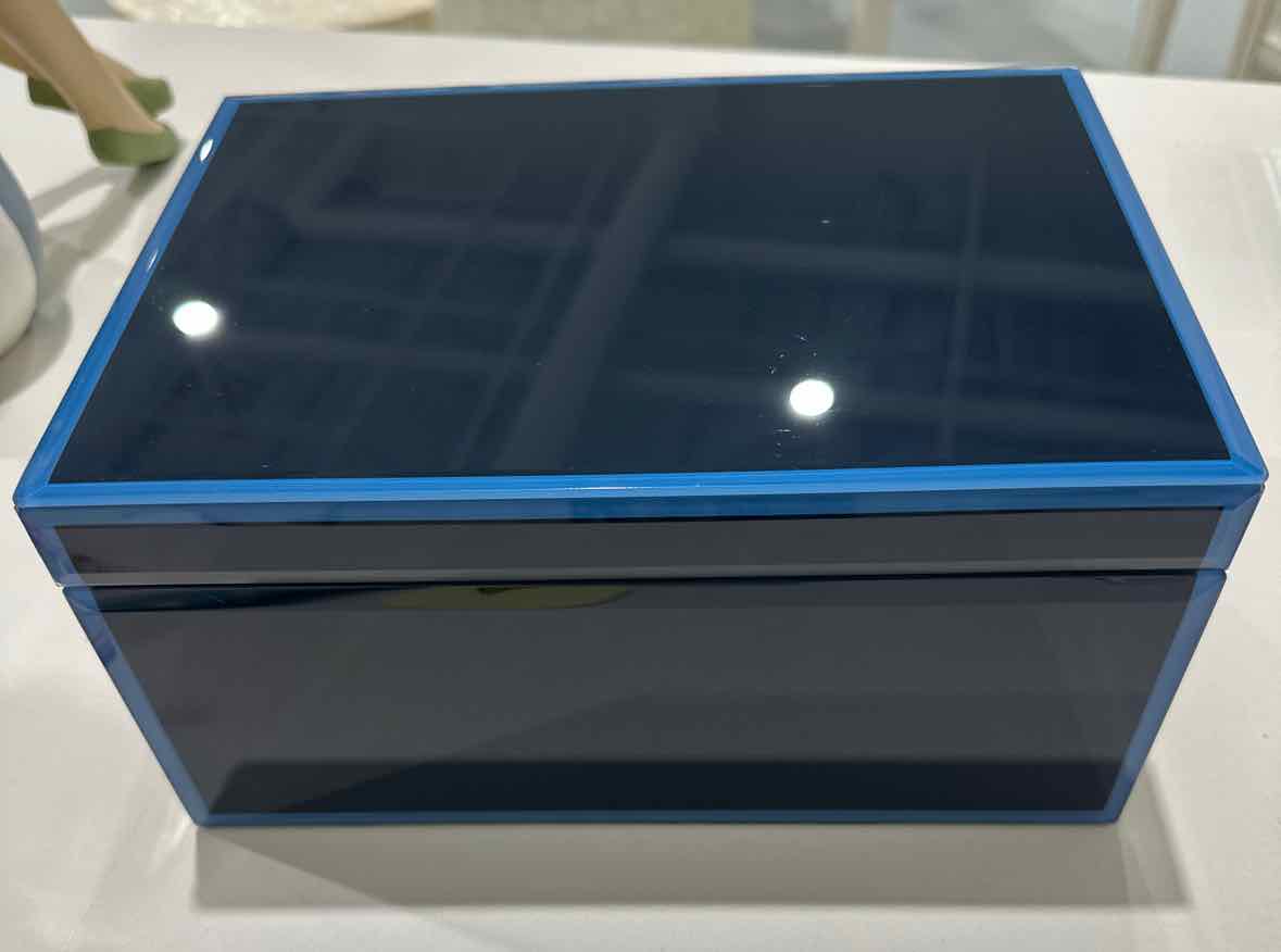Pre-Owned Wolf Blue & Black Glass Jewlery Box