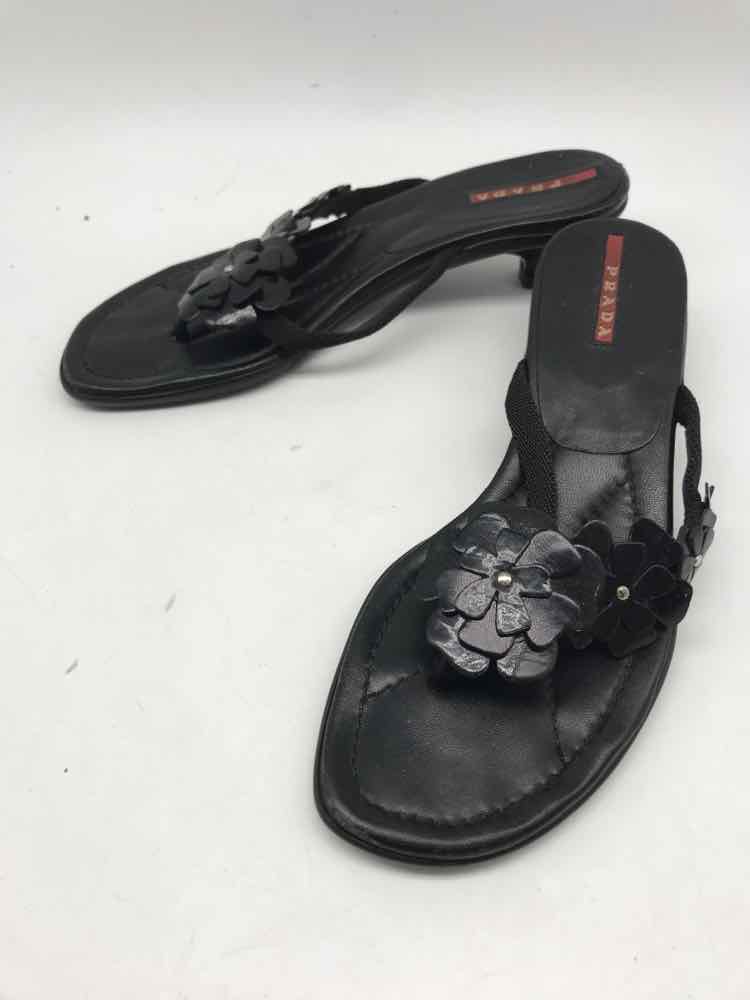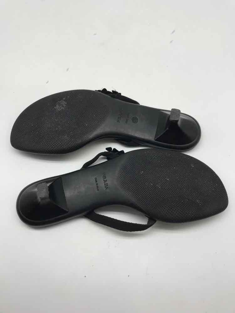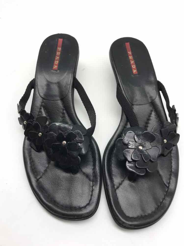 Pre-Owned Prada Black Size 36.5 Floral Thong Sandals