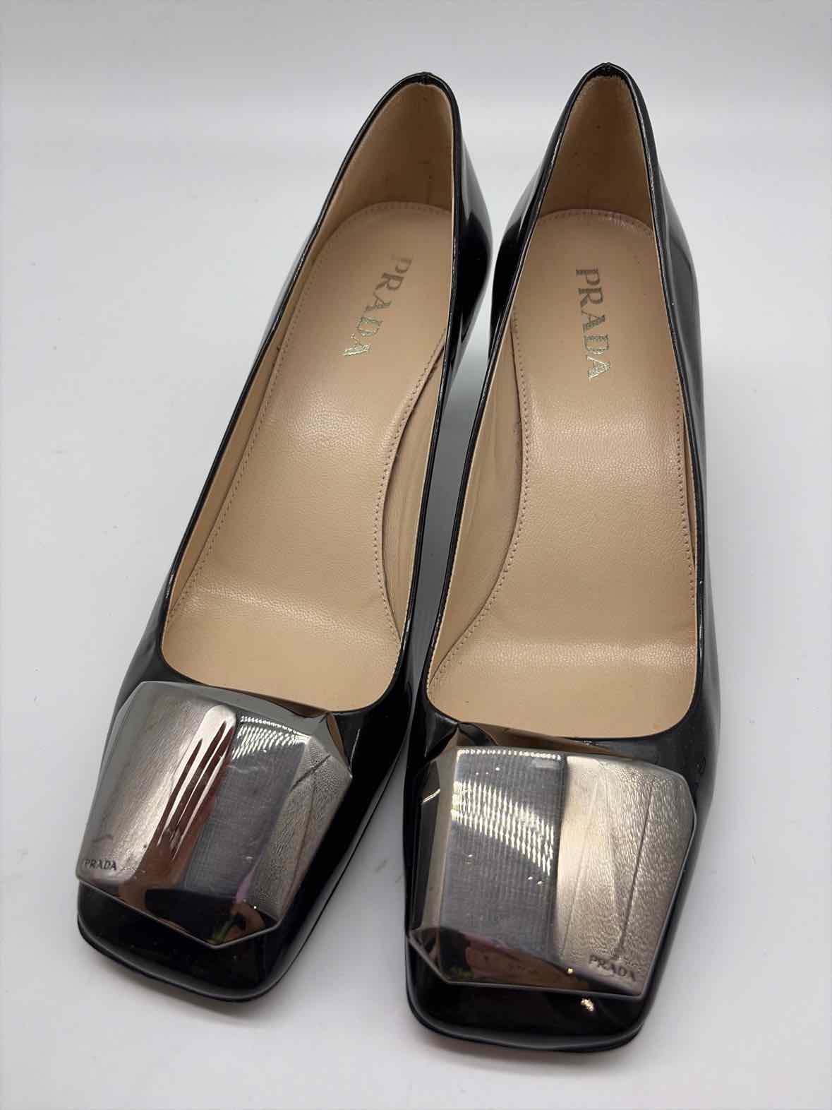 Pre-Owned Prada Black Size 37.5 Kitten Heel Heels