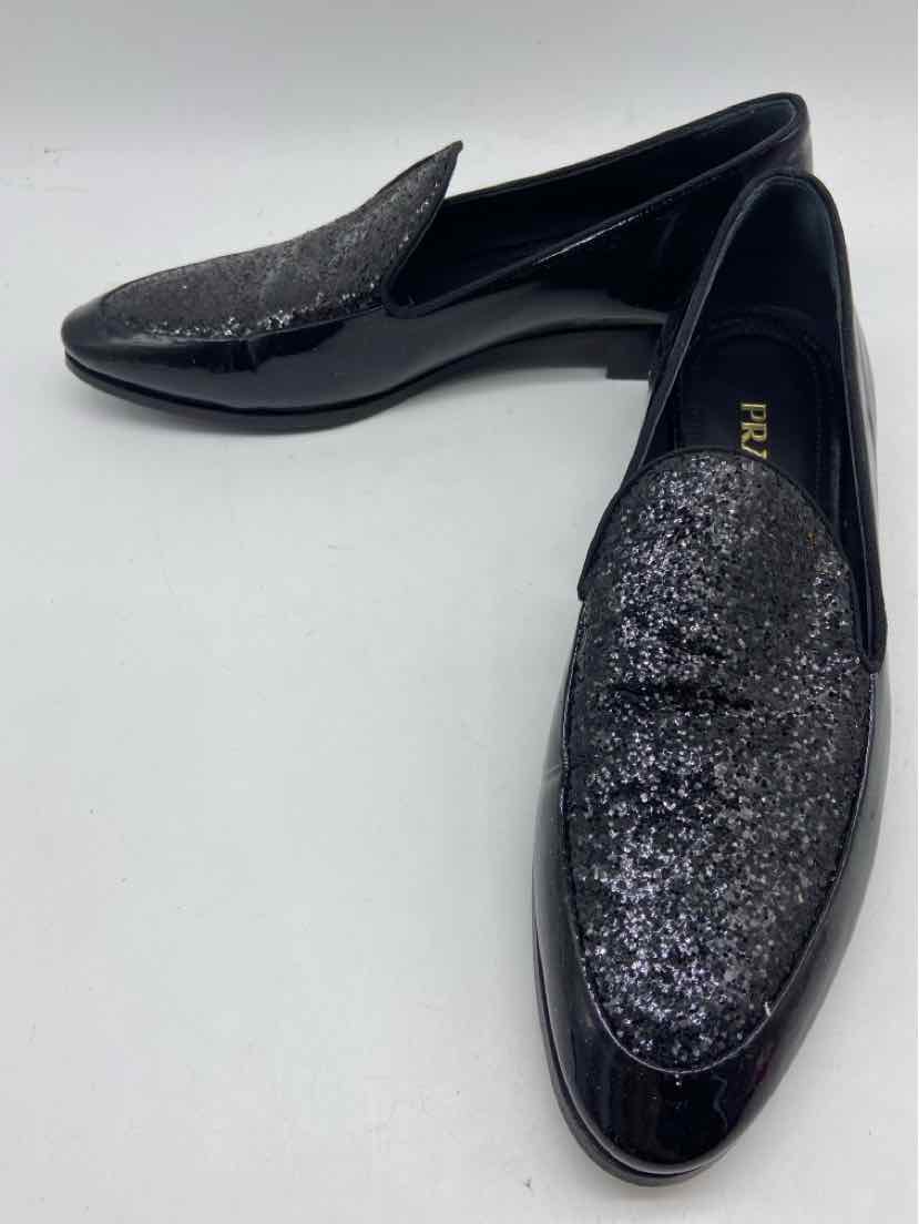 Pre-Owned Prada Black Size 38 Sparkle Loafer Flats