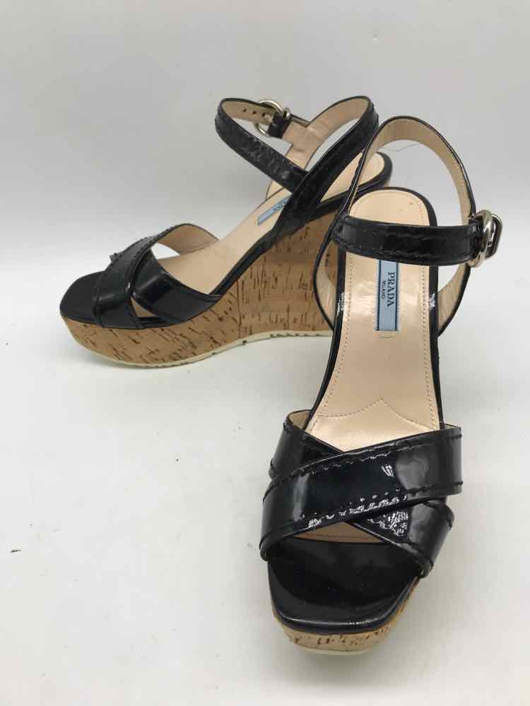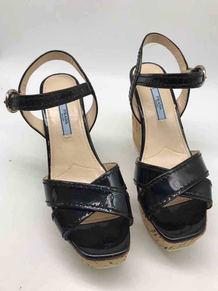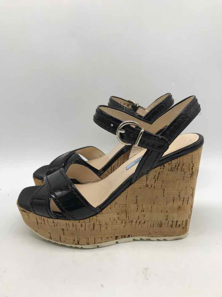 Pre-Owned Prada Black Size 38 Wedge Sandals