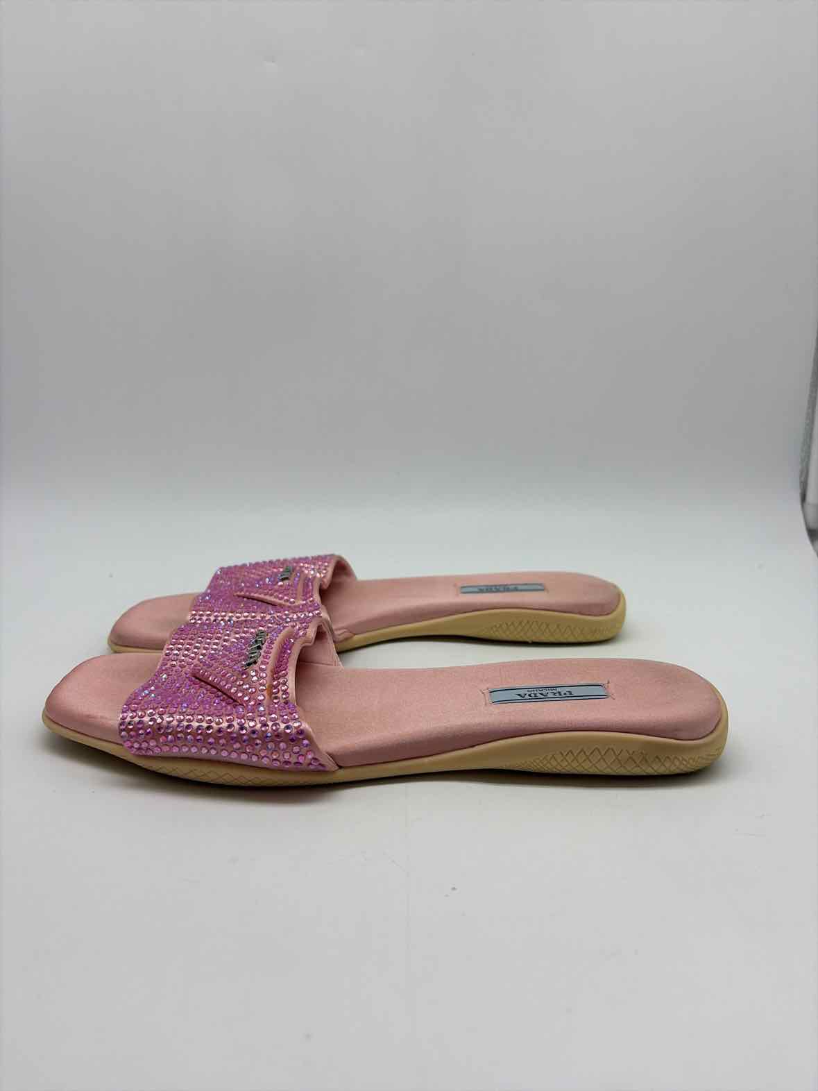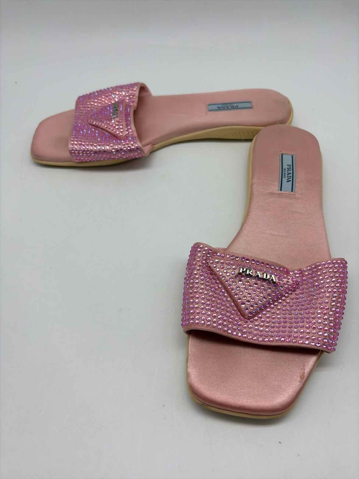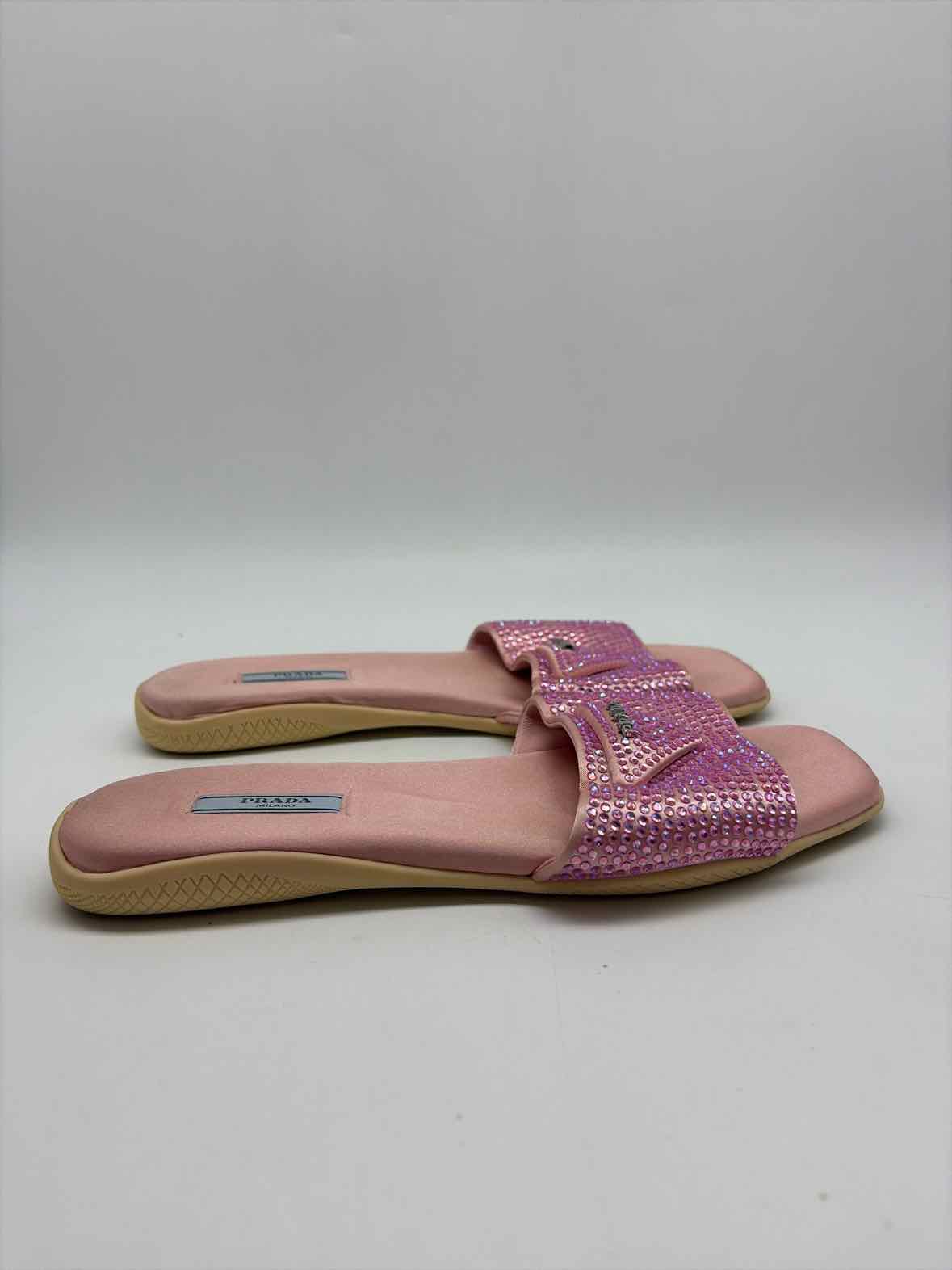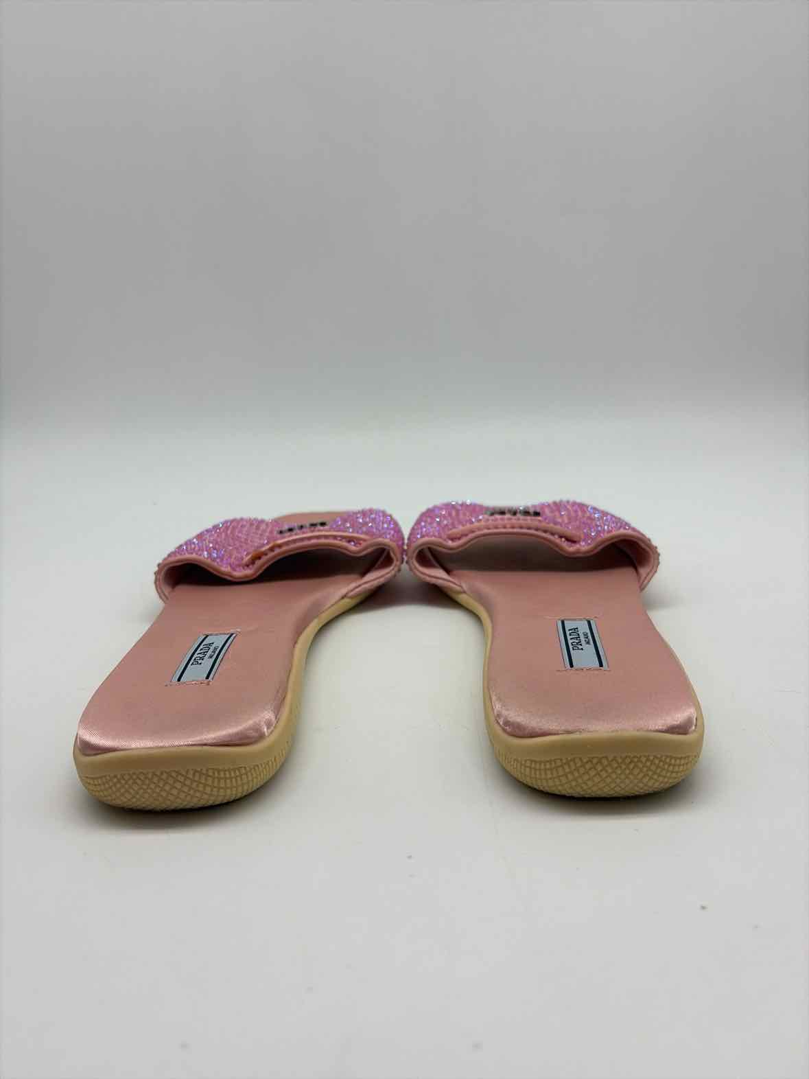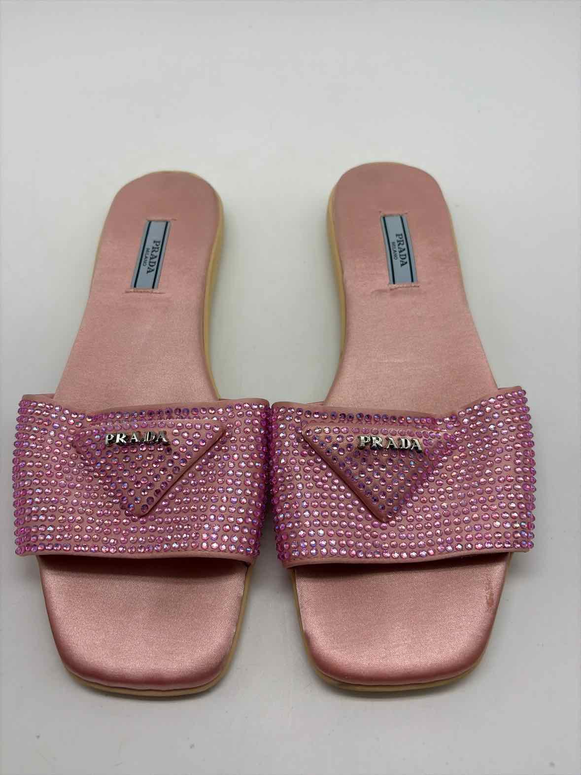 Pre-Owned Prada Pink Size 39 Rhinestone Slide Flats