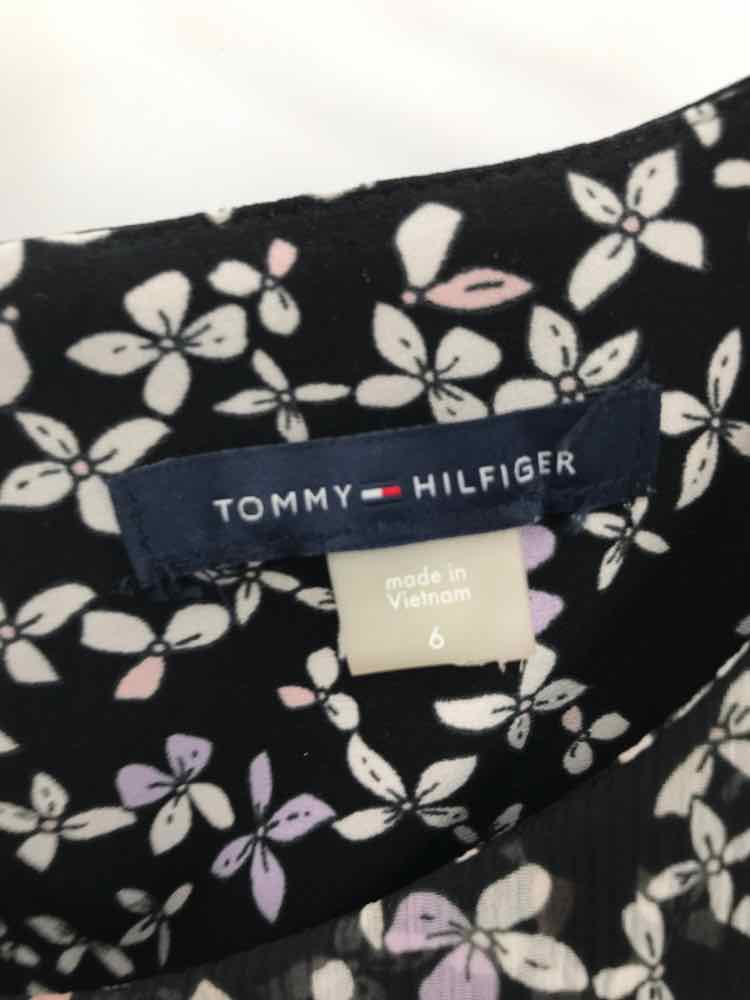Pre-Owned Tommy Hilfiger Black Size 6 Floral Shift Knee Length Sleeveless Dress