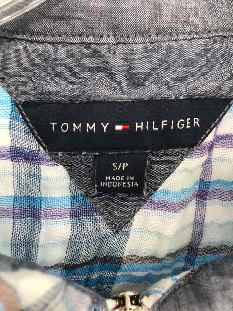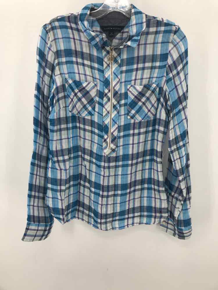 Pre-Owned Tommy Hilfiger Blue Size Small Plaid Long Sleeve Blouse