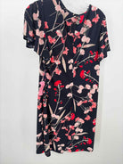 Pre-Owned Tommy Hilfiger Navy Size 10 Floral Knee Length Short Sleeve Dress