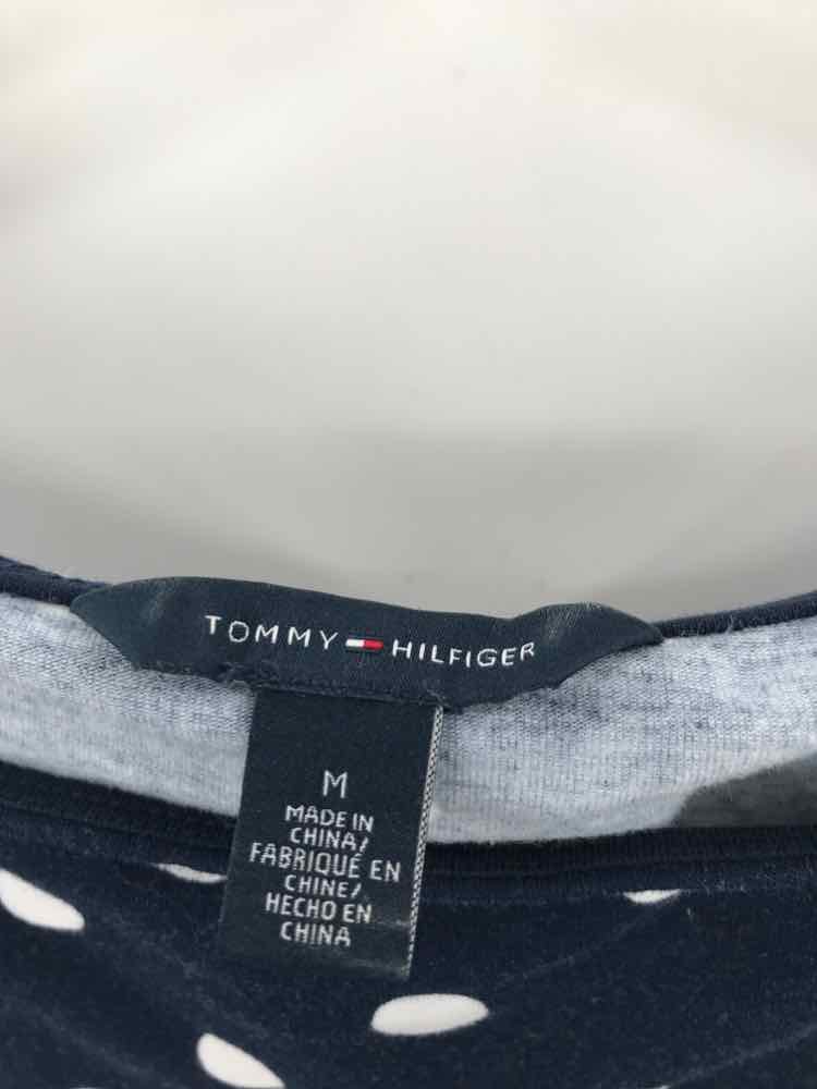 Tommy Hilfiger Navy Size Medium Polka Dot Shift Knee Length Sleeveless Dress