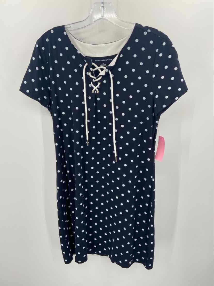 Pre-Owned Tommy Hilfiger Navy Size Medium Polka Dot Short Short Sleeve Dress