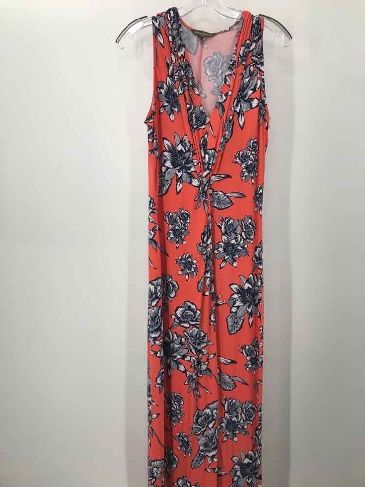Pre-Owned Tommy Hilfiger Orange Size Medium Floral Knee Length Sleeveless Dress