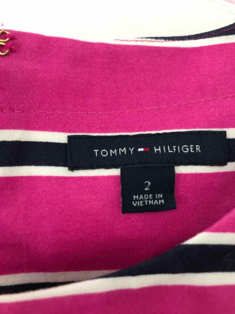 Pre-Owned Tommy Hilfiger Pink Size 2 Stripe Knee Length Sleeveless Dress
