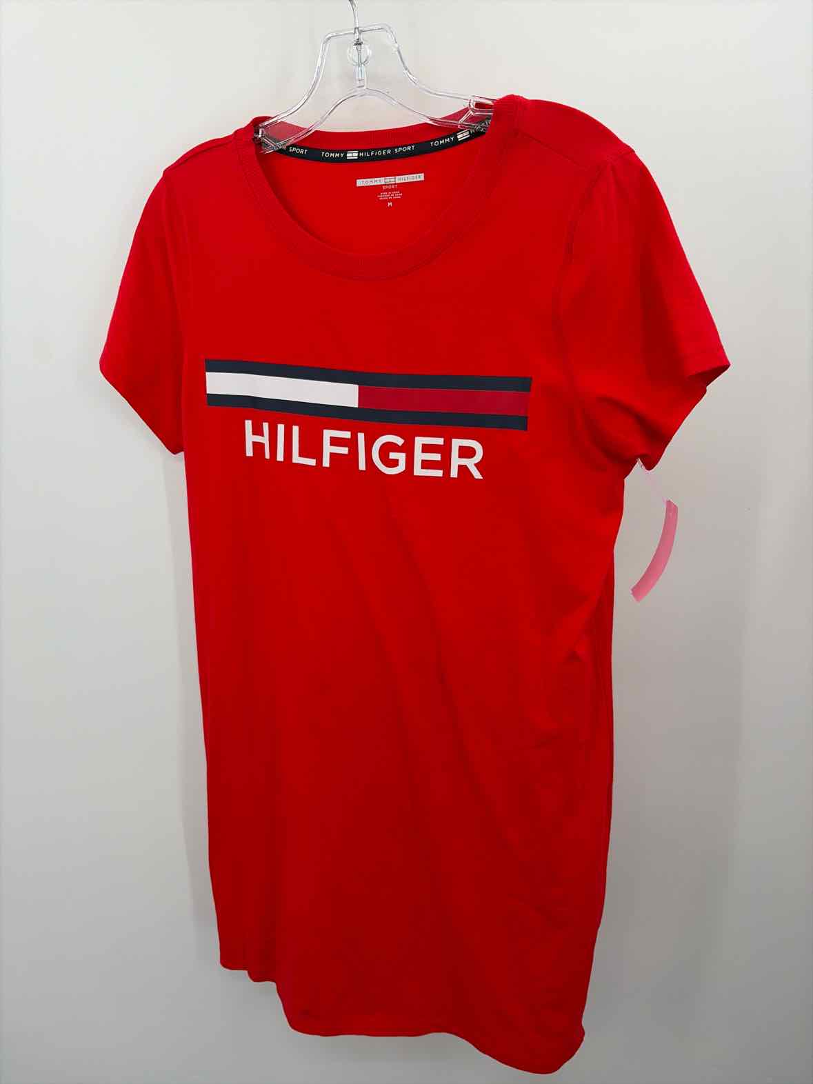 Pre-Owned Tommy Hilfiger Red Size Medium Logo Short Short Sleeve Dress
