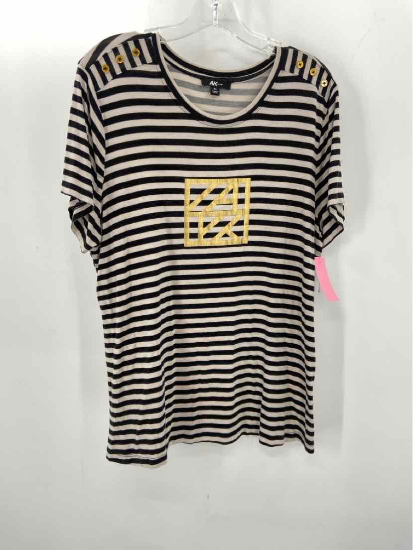 Pre-Owned Anne Klein Black Size XL Stripe T-shirt