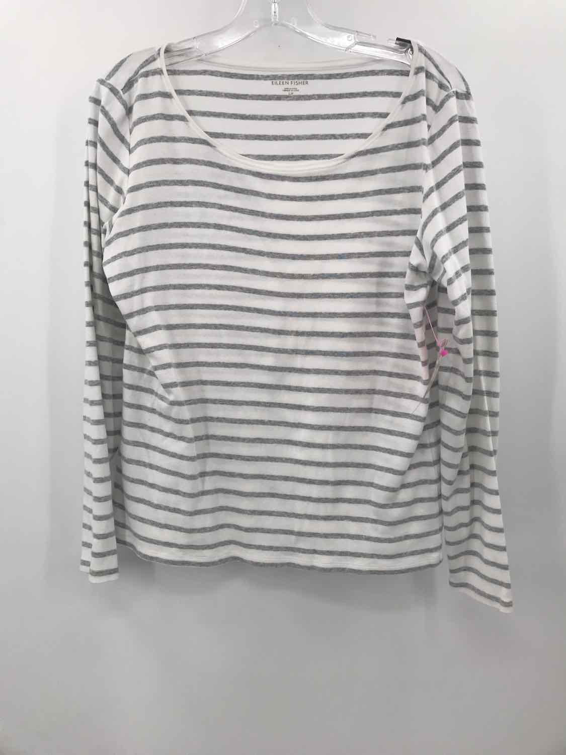 Pre-Owned Eileen Fisher White Size Small Stripe Long Sleeve T-shirt
