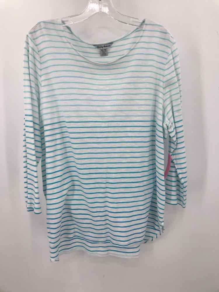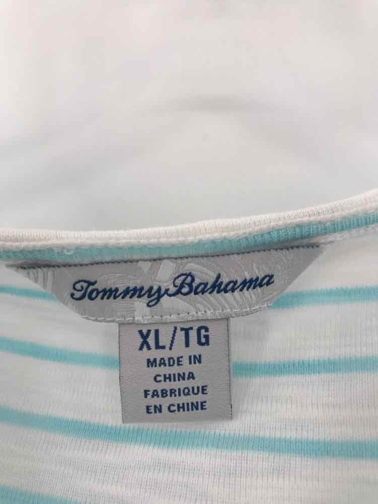 Pre-Owned Tommy Bahama White Size XL Stripe 3/4 Sleeve T-shirt