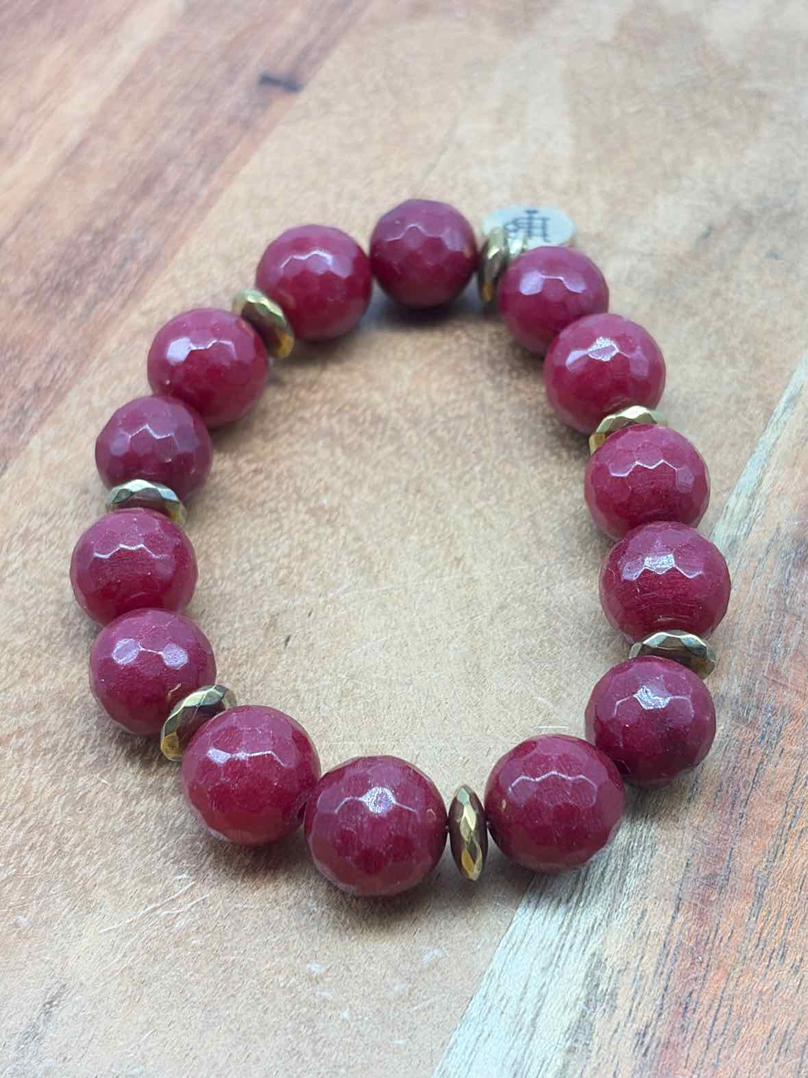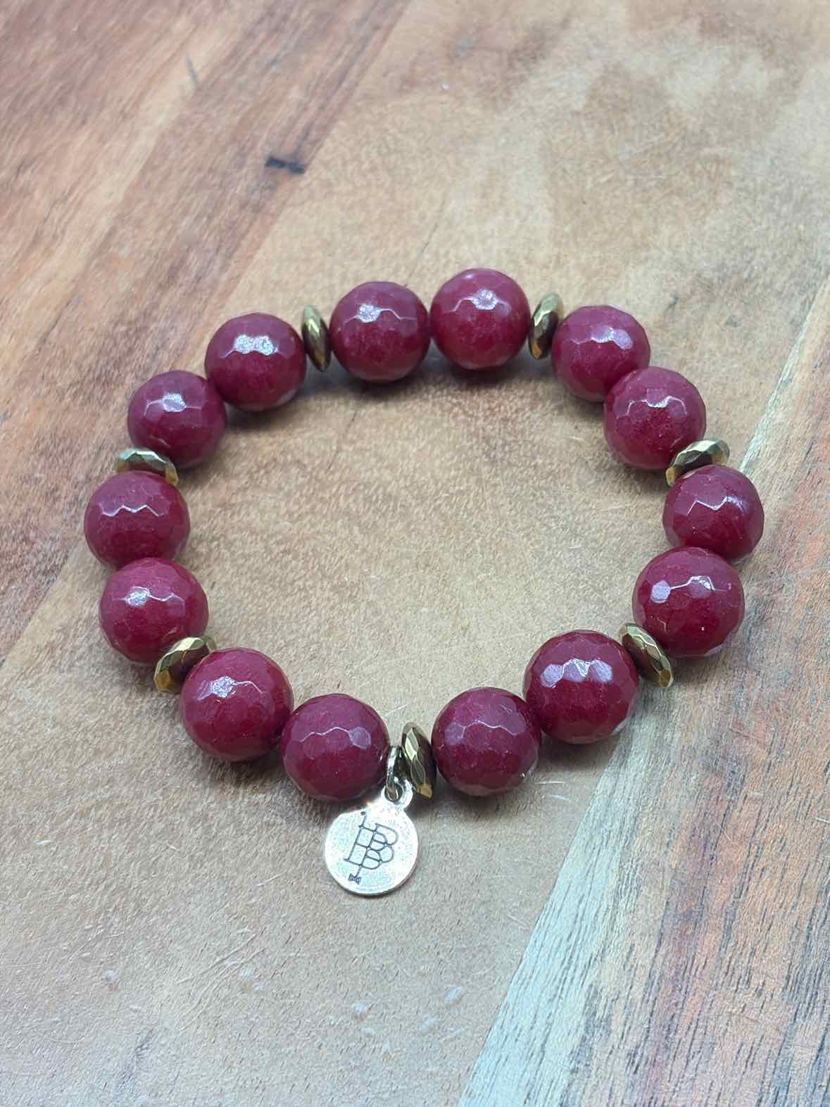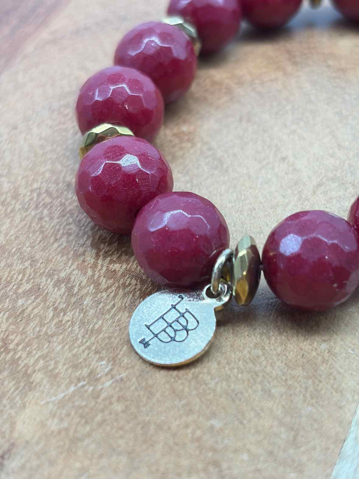 Pre-Owned Bourbon & Bowties Burgundy Stretchy Beaded Bracelet