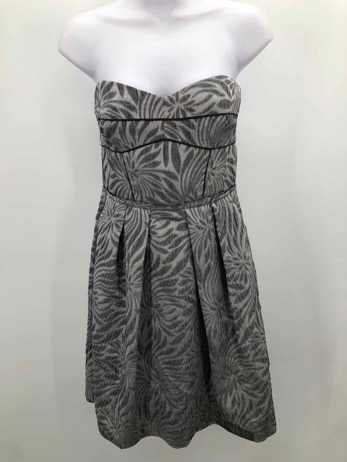 Cynthia Steffe Gray Size 2 Textured Pleated Knee Length Strapless Dress
