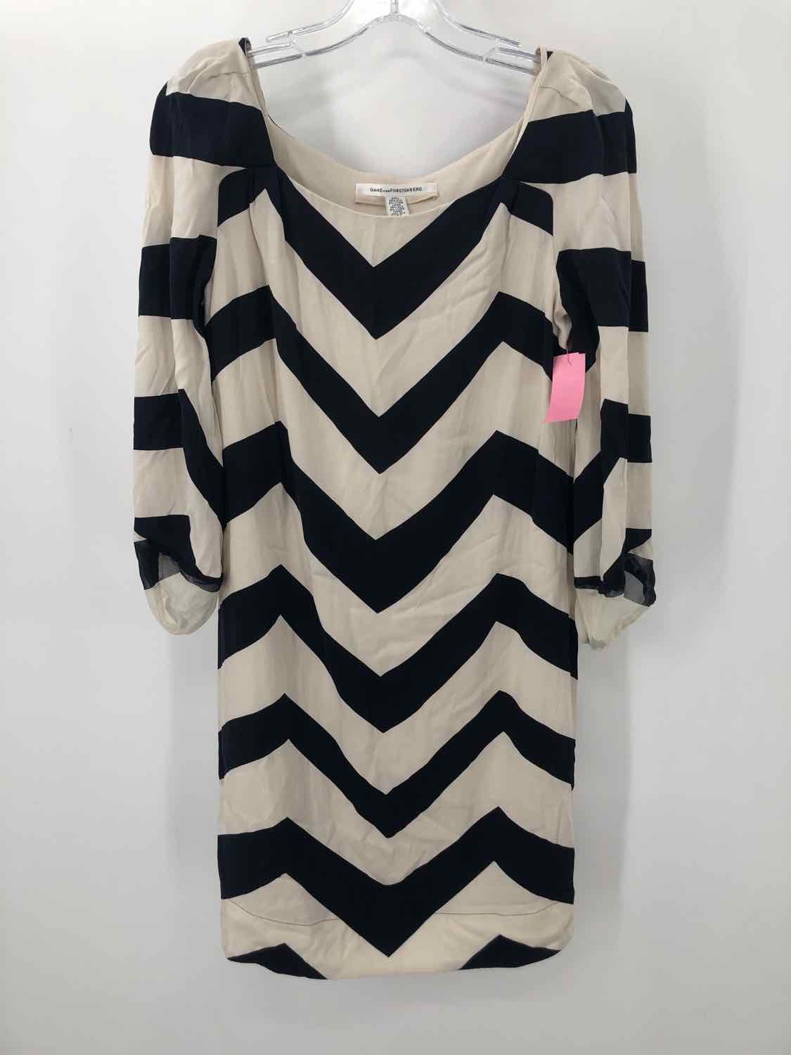 Diane Von Furstenberg Tan Size 6 Strands Knee Length Long Sleeve Dress