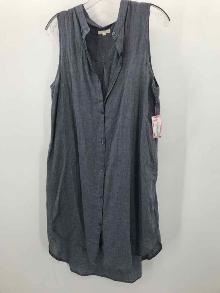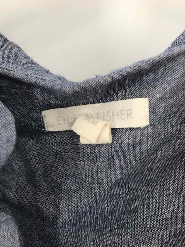 Eileen Fisher Blue Size Medium Button Down Knee Length Sleeveless Dress