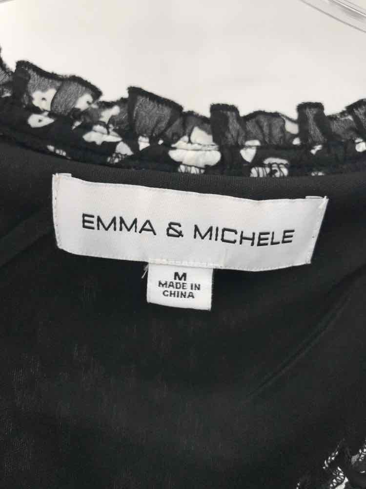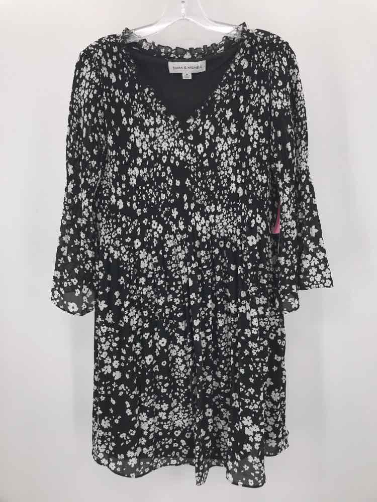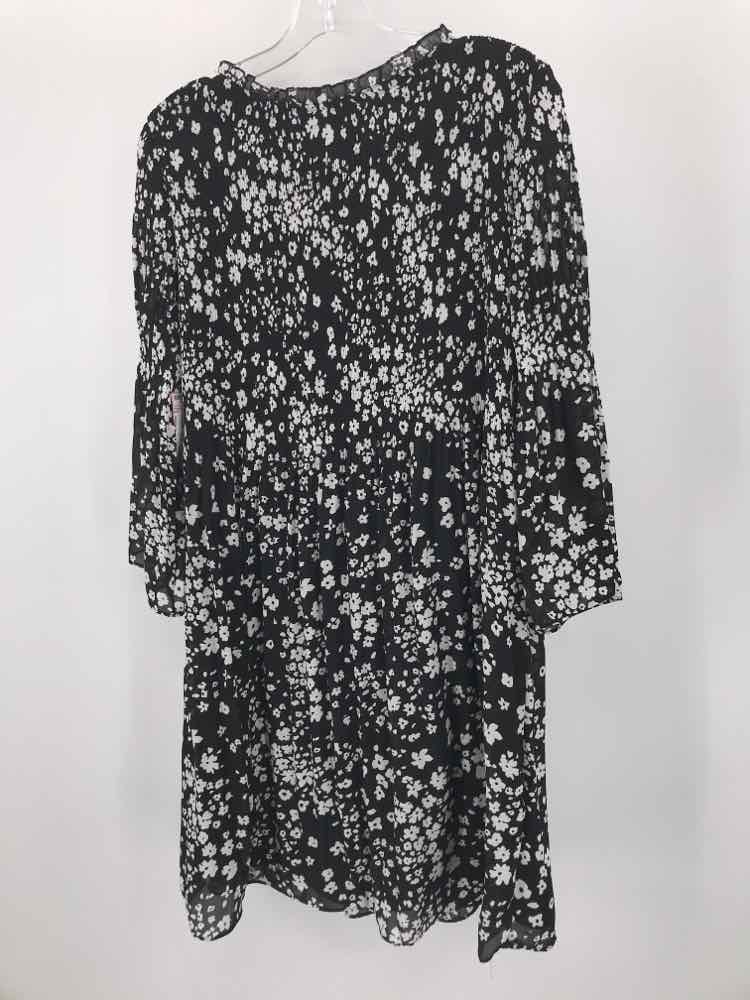 Emma & Michelle Black Size Medium Floral Knee Length Long Sleeve Dress
