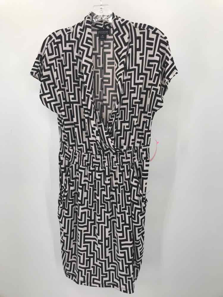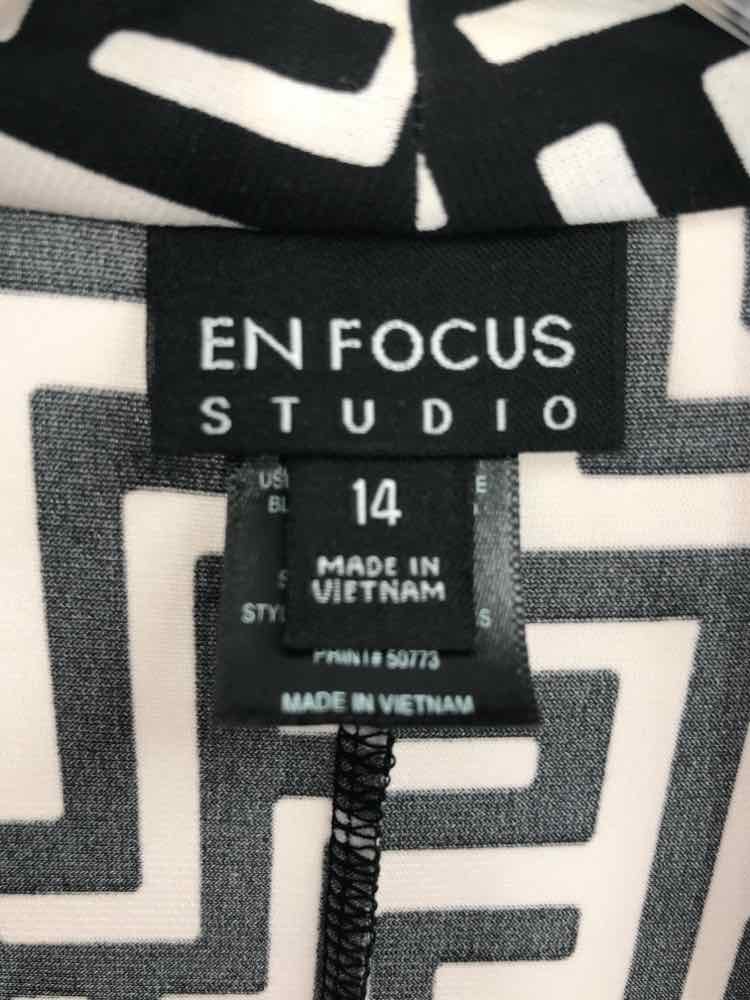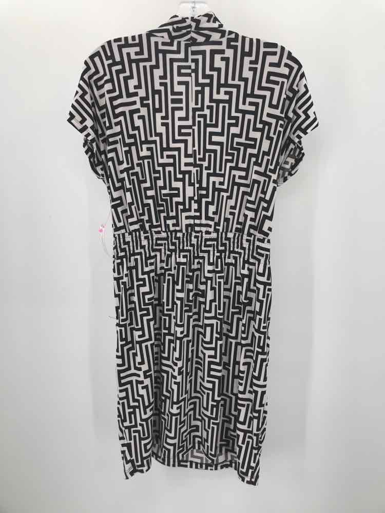 En Focus Black Size 14 Geometric Two Tone Knee Length Short Sleeve Dress