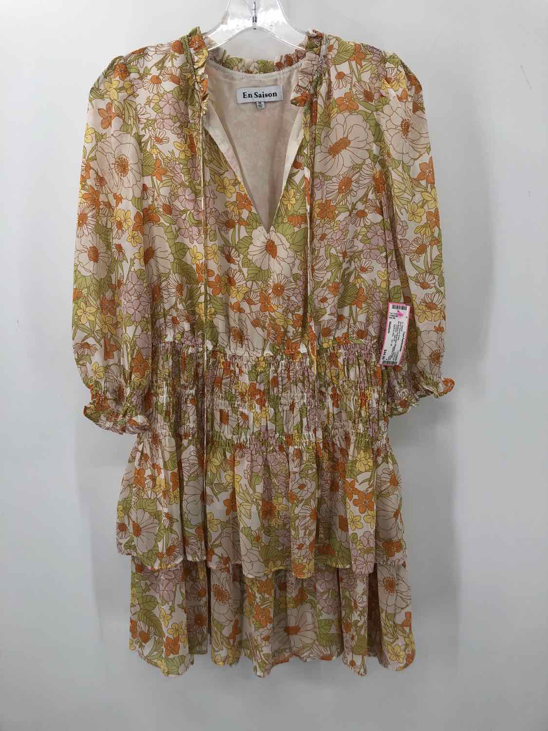 En Saison Yellow Size Medium Floral Shift Knee Length Short Sleeve Dress