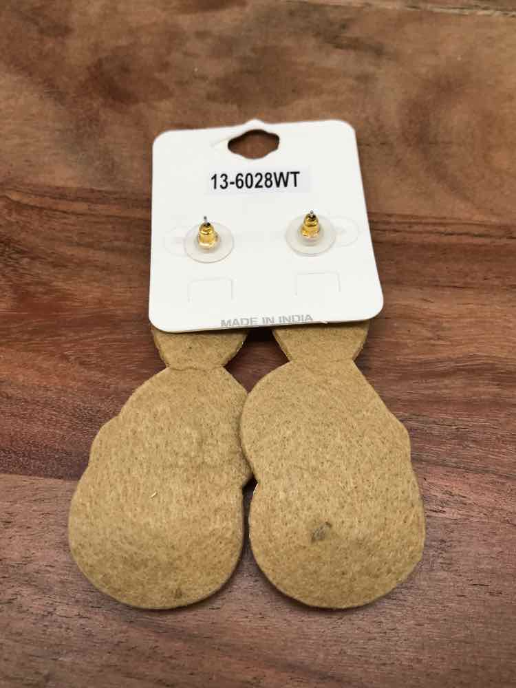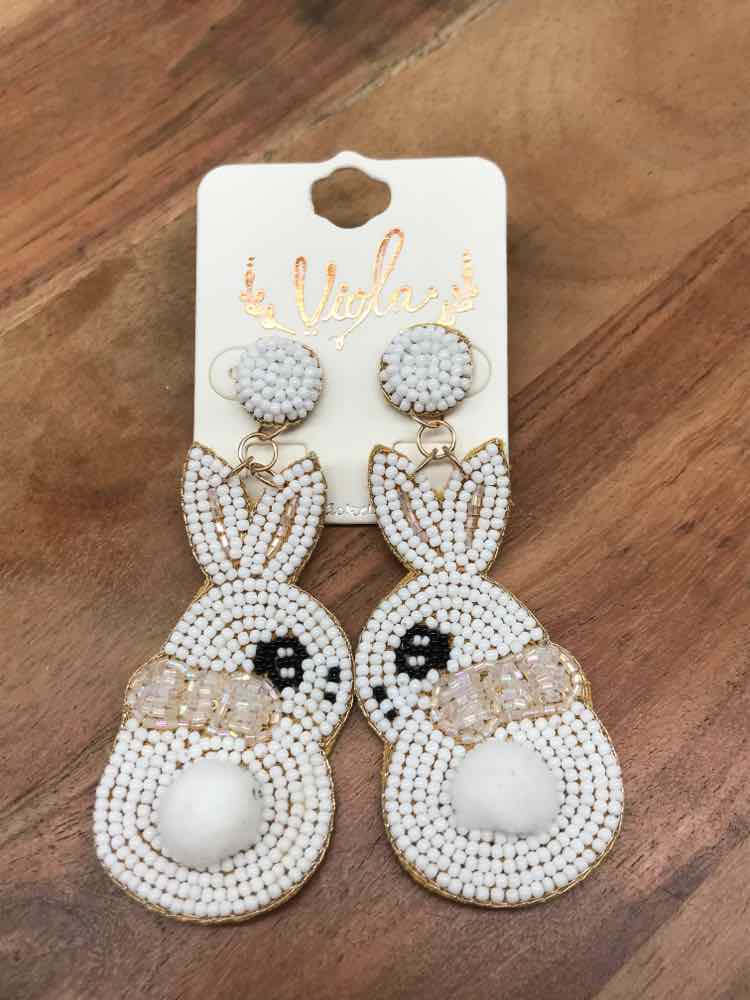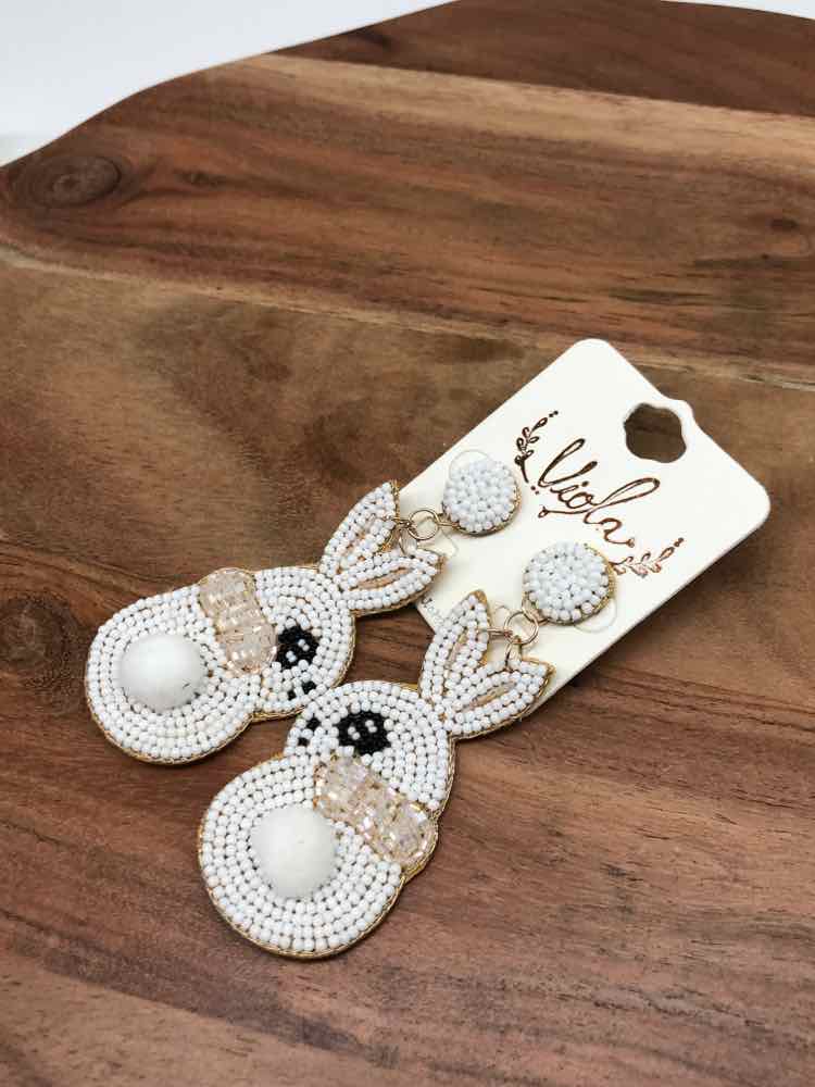 Gold and White Beaded Bunny Pierced Drop Earrings