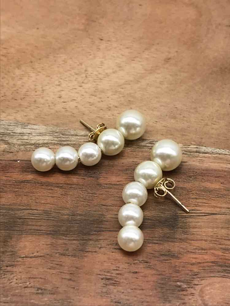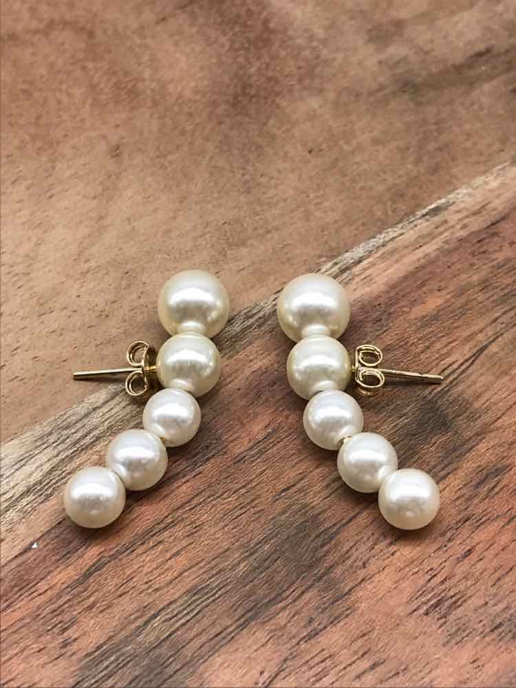 Gold Faux Pearl Pierced Drop Earrings