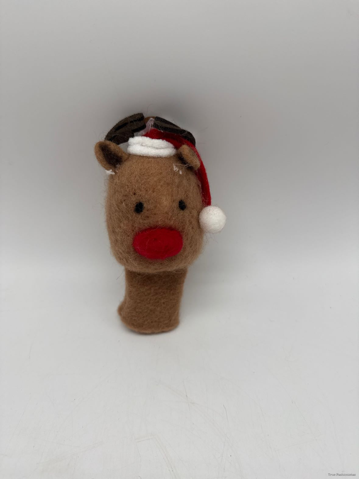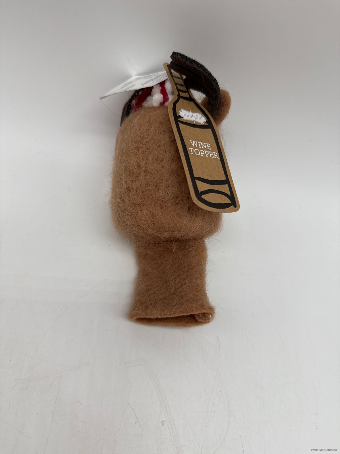 Mud Pie Brown Fabric Christmas Reindeer Wine Topper